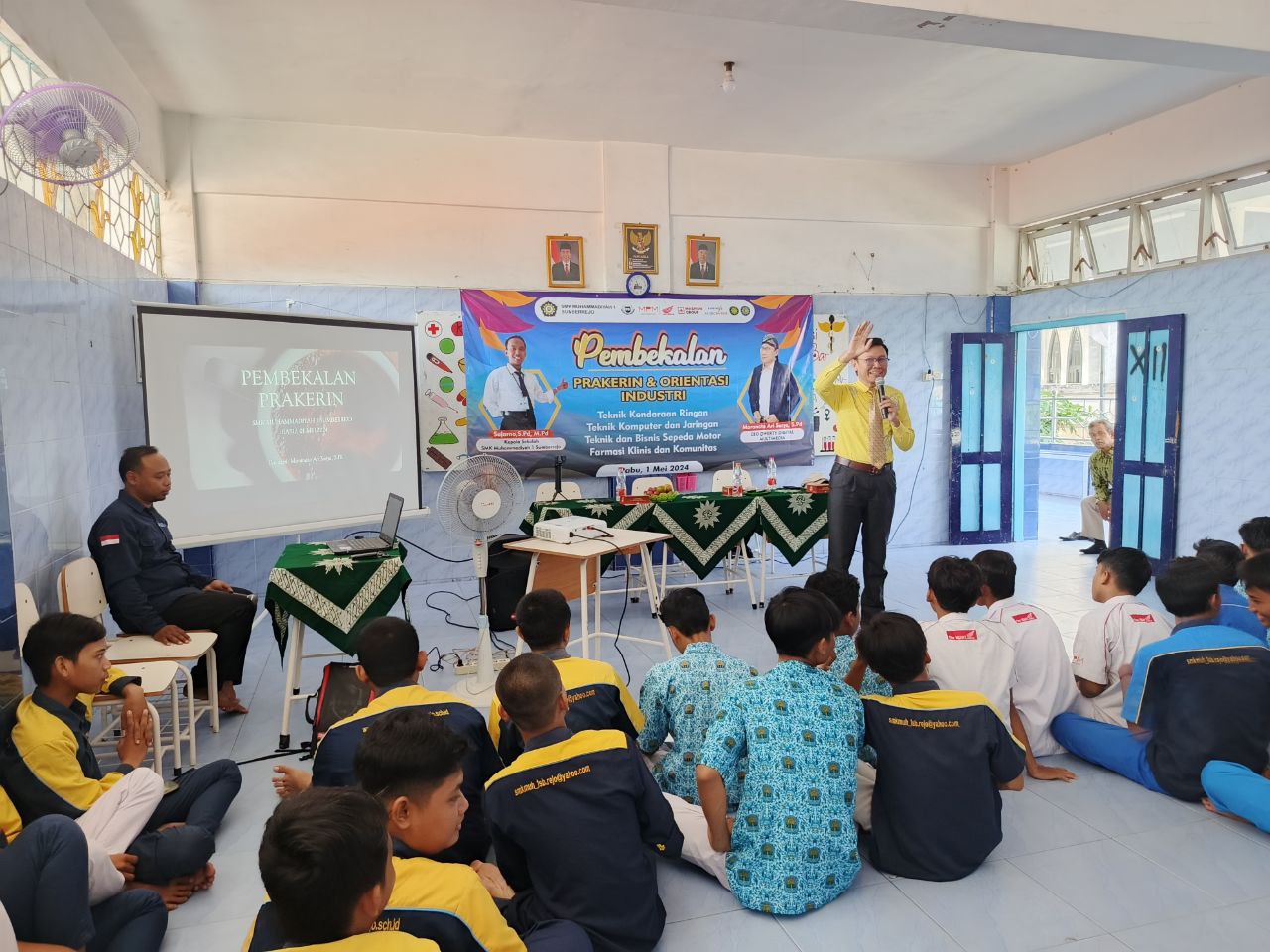 SMK Muhammadiyah 1 Sumberrejo menggelar kegiatan pembekalan kepada seluruh peserta didik kelas XI yang akan melaksanakan Program Kerja Lapangan (PKL) Tahun 2024. Pembekalan PKL dilaksanakan di Kelas Farmasi Lantai 2 SMK Muhammadiyah 1 Sumberrejo pada hari Rabu, 1 Mei 2024. Dalam kegiatan pembekalan, SMK Muhammadiyah 1 Sumberrejo menghadirkan narasumber yang kompeten untuk memberikan pengetahuan seputar kegiatan PKL di Dunia Usaha maupun Industri nantinya. Di antara narasumber yang hadir memberikan materi adalah MARANATA ARI SURYA,S.Pd CEO QWERTY DIGITAL MULTIMEDIA. Pembekalan peserta PKL dimulai dengan pemahaman umum apa fungsi dan manfaat PKL, dan safty first dalam pekerjaan dari Kepala SMK Muhammadiyah 1 Sumberrejo. Selanjutnya seluruh peserta PKL mendapatkan penjelasan tentang Budaya Kerja dan Motivasi Kerja yang disampaikan dari Narasumber.